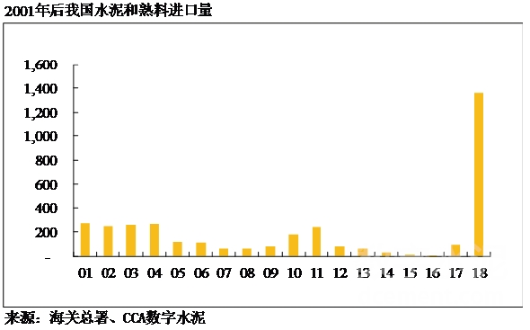 2017年以前,中國水泥年進(jìn)口量最多不到300萬噸,2016年更是達(dá)到了歷史低谷的6.5萬噸。但隨著我國沿海地區(qū)熟料價(jià)格高企,2018年以水泥熟料為主要產(chǎn)品的進(jìn)口量爆發(fā)性增長(zhǎng),僅當(dāng)年的進(jìn)口量就達(dá)到1363萬噸,比2005-2017年13年進(jìn)口量的總和還多。