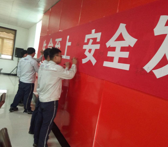 (5)公司安全誓詞:企業(yè)安全生產(chǎn)是我的崇高職責(zé),為了公司安全生產(chǎn),為了家庭幸福美滿,我們一定要做到“安全時(shí)刻在線,幸福相伴終生”,堅(jiān)決履行自己的安全職責(zé),遵守安全操作規(guī)程、規(guī)章制度,自覺做到不傷害自己、不傷害他人、不被他人傷害;堅(jiān)決完成安全生產(chǎn)任務(wù),做一名本質(zhì)安全型員工!